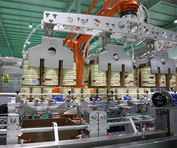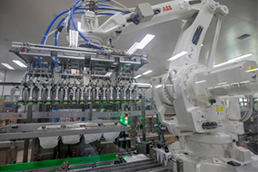 機器人裝箱機采用機器人裝箱,通過更換夾具,使其適合不同包裝物的裝箱需求,極大的提高了設備的靈活性、穩(wěn)定性和可靠性。